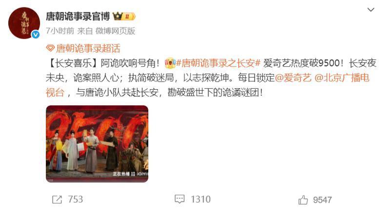 我们都知道,一部剧如果主演自带热度,那么剧播出的时候,热度会比较高,《赴山海》播出的首日热度为7657,《临江仙》播出的首日热度为7685,《天地剑心》播出的首日热度为8181,万万没想到的是,《唐朝诡事录之长安》的首日热度竟为8850。